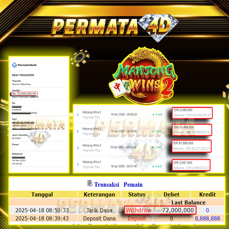 PERMATA4D JACKPOT MAHJONG WINS 2 Rp. 72.000.000,- LUNAS