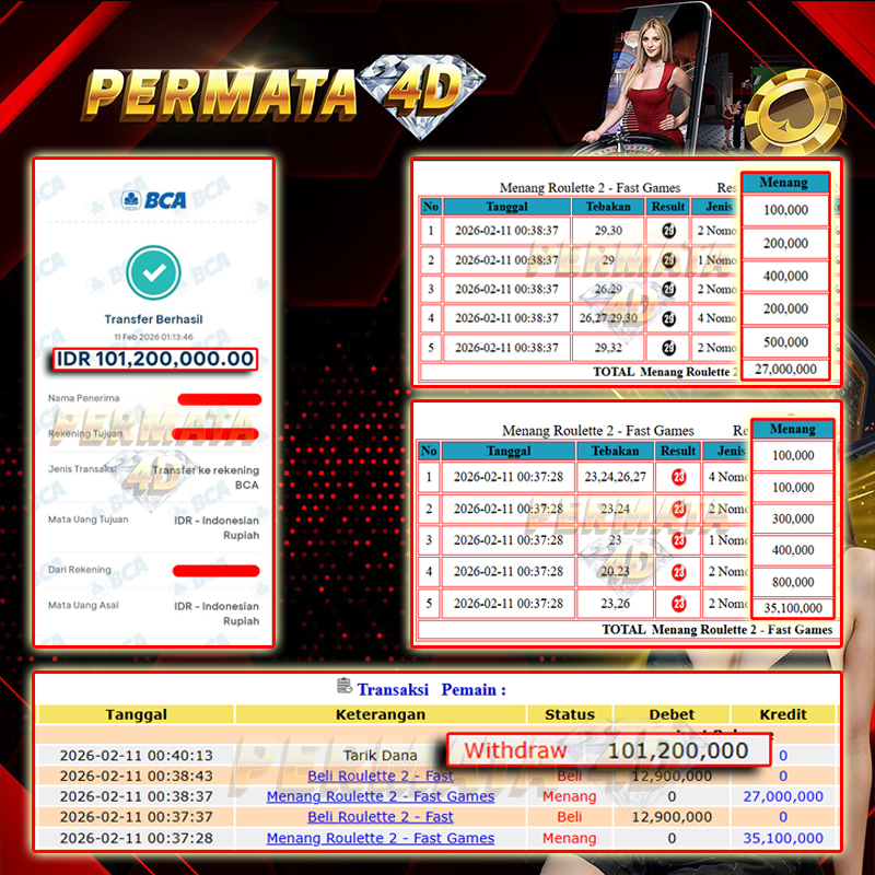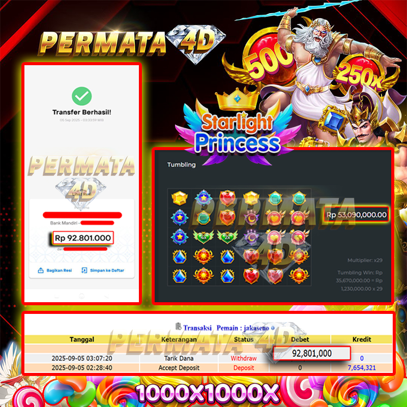 Selamat kepada User id : CI**** Telah berhasil mendapatkan kemenangan besar pada permainan STARLIGHT PRINCESS kemenangan Sebesar Rp. 100.000.000, Setelah mengisi formulir withdraw dengan kurung waktu hanya 5 - 10 menit pihak Permata4D sudah melakukan transfer kepada pemilik Userid dan dana sudah dapat di cairkan oleh pemenang. Bukti pembayaran yang kami berikan merupakan bukti pembayaran yang SAH / VALID yang langung di dapatkan melaui tanda transfer transaksi dari Bank yang di tuju.